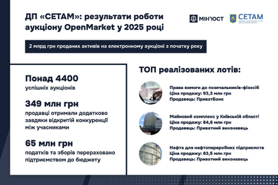 З початку року 4 458 успішних торгів із загальною сумою продажу активів на 2 млрд грн.